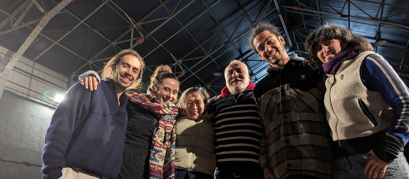 (De gauche à droite) Tom Binet : Metteur en scène et acro-danseur / Goïa van den Berg : Comédienne et chanteuse / Isabelle Saudubray : Comédienne / Mohanad Aljaramani : Musicien oudiste / Diogo Santos : Acro-danseur / Zelda Soussan : Regard extérieur