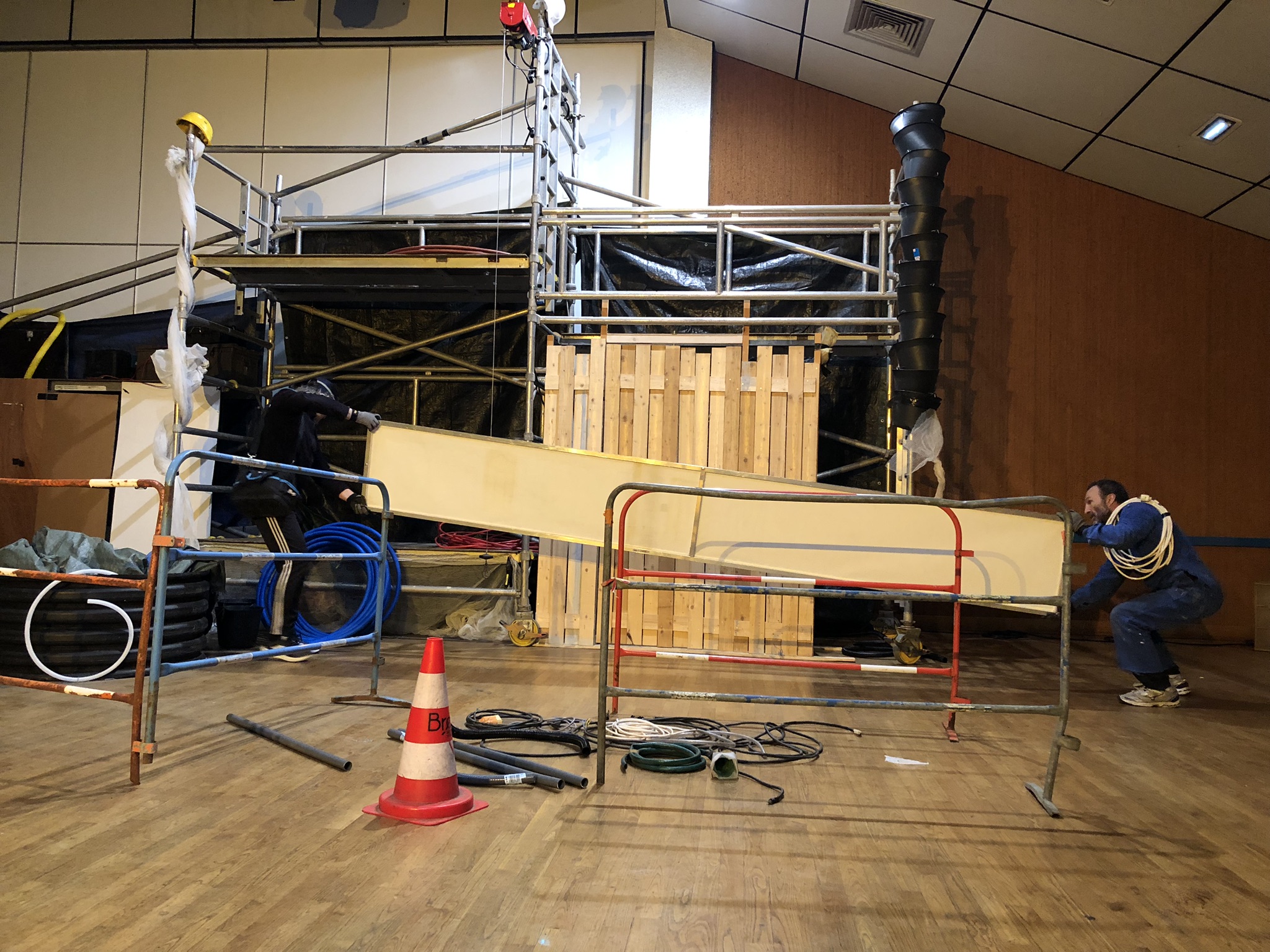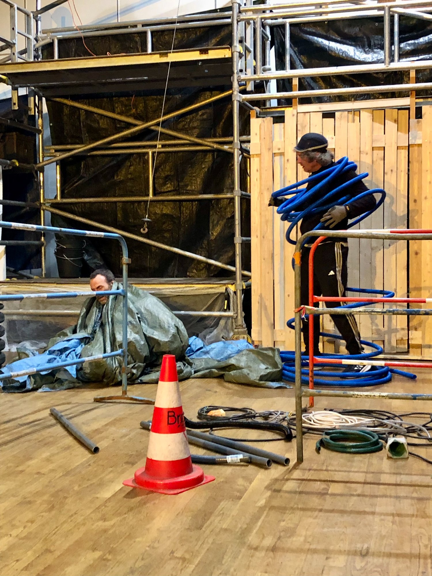 Dans Bouffons, deux ouvriers, semblables mais différents, s’aventurent dans un chantier chaotique. Confrontés à l’accumulation des matériaux, au débordement des matières et des éléments, ils perdent le sens de leur travail qui vire à l’absurde. Avec cette nouvelle création, Dédale de Clown questionne la folie du monde et les aberrations de son organisation, la surproduction, l’abondance et son absurdité.