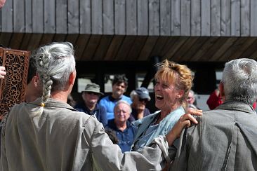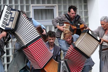 CoraSon explore cet espace entre toi et moi, ces fils invisibles qui nous lient et nous relient. Tour à tour chanteurs, danseurs, acteurs, accordéonistes les artistes s’engagent corporellement dans un rituel généreux et joyeux. Le public, parfois au centre, parfois autour, toujours avec… La spatialisation sonore participe à créer une bulle sensible, au sein de laquelle se retrouvent artistes et public…le chœur s’agrandit, il palpite.