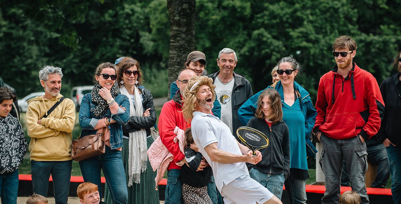 Don’t Do It est une satire percutante qui s’attaque, avec humour et une bonne dose d’absurde, à la devise « Toujours plus vite, plus loin, plus fort ». Ce titre, à la fois provocateur et ironique, agit comme un appel à la subversion, critiquant le sport comme un moyen de propagande politique, l’hypervalorisation du corps et les normes masculines dominantes. Cette proposition artistique se décline en deux parties : un happening 12h02 et un spectacle fixe à 15h43.
