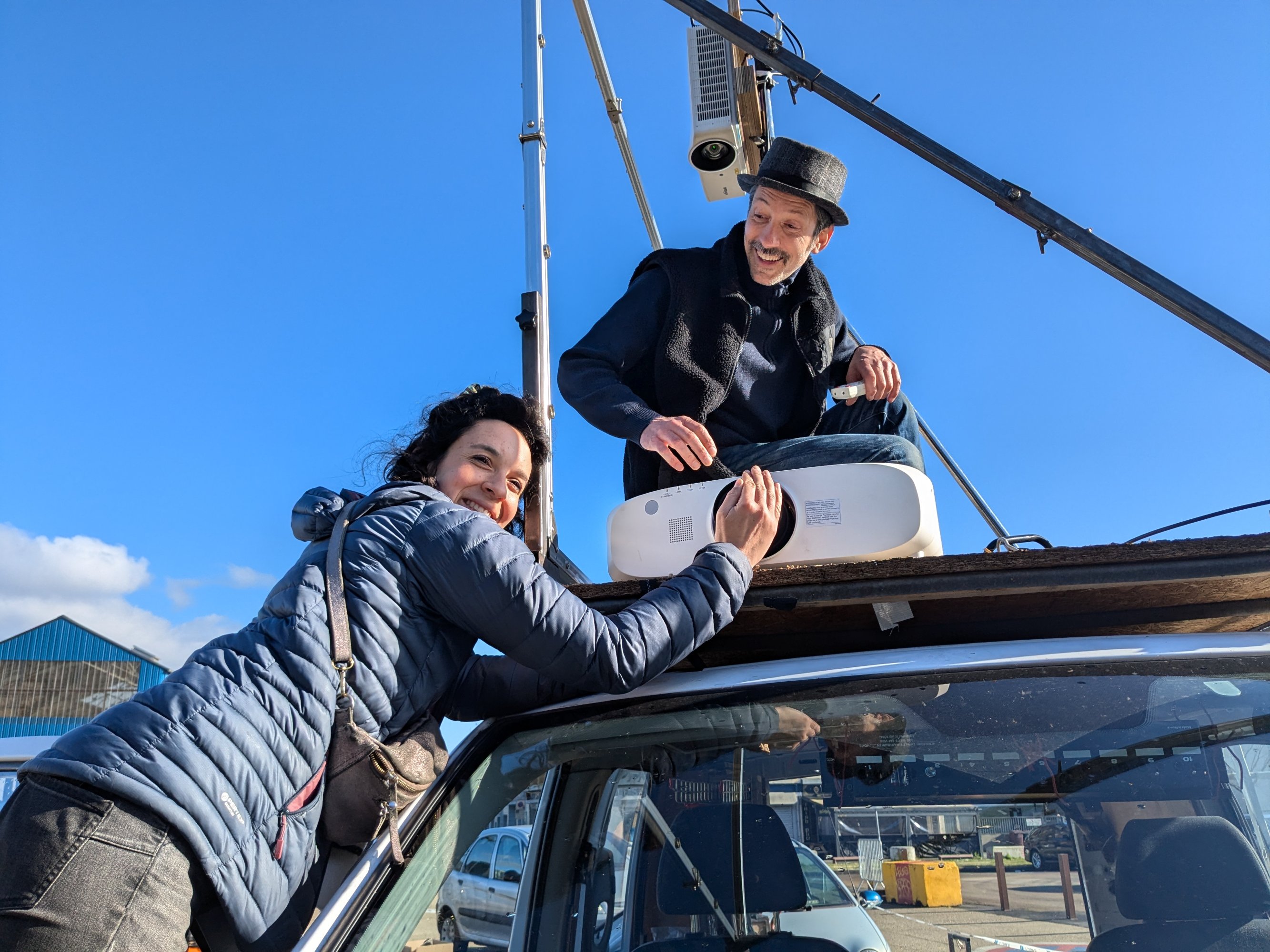 Quand le tournage prend l’eau, il faudra toute la créativité d’une équipe technique brinquebalante (mais enthousiaste), et de figurants tirés du public, pour faire advenir le film. Effets spéciaux de cinéma, caméra live et bruitage son en direct, tous les moyens seront bons pour embarquer le public dans la fabrique de l’histoire !