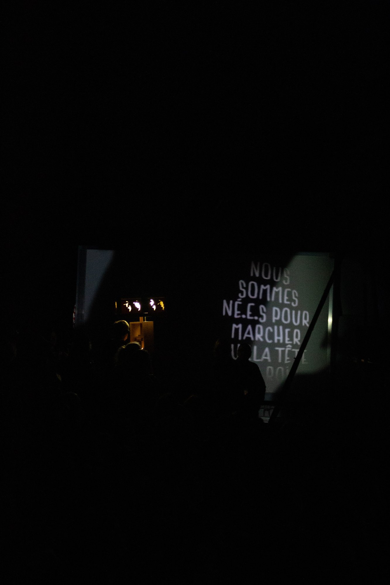 Basé sur un film d’animation, Fantôme raconte l’histoire d’un enfant qui déclenche malgré lui une révolte populaire et l’effondrement d’un système totalitaire. Ce spectacle à la croisée des arts numériques, de la musique et du théâtre d’objets utilise le principe narratif du ciné-concert avec des interprètes en direct et des dispositifs scéniques uniques qui évoluent avec l’histoire.