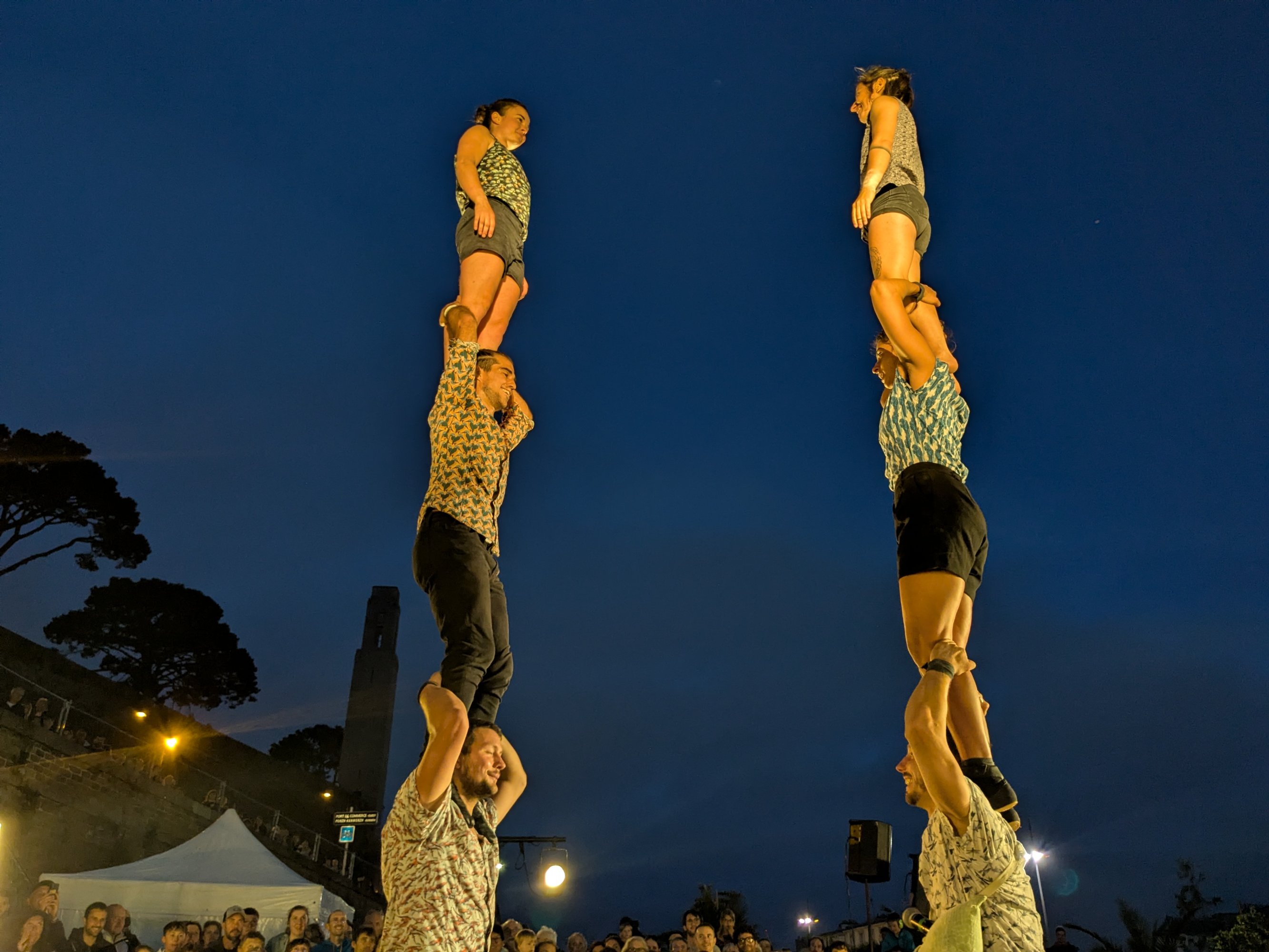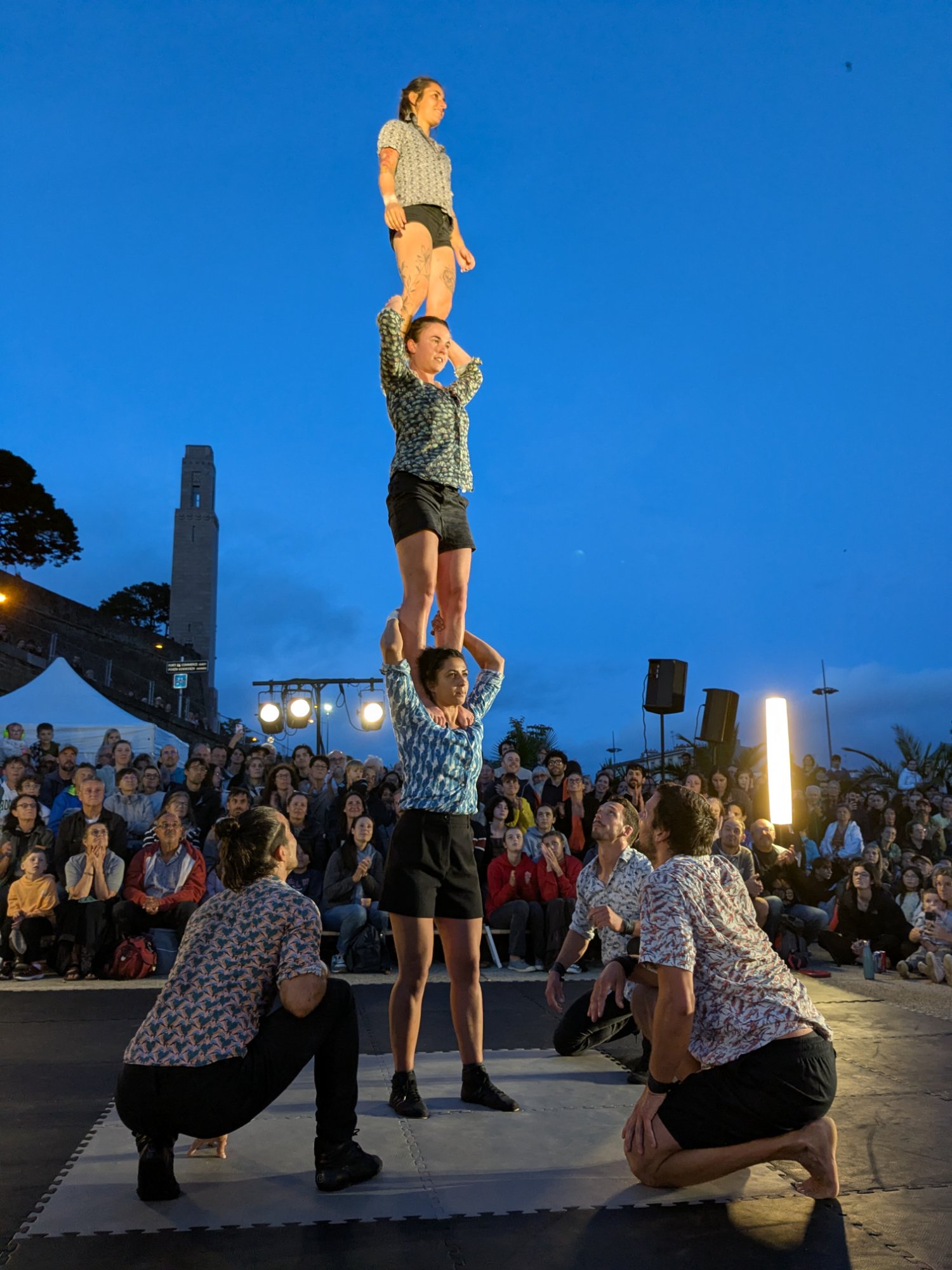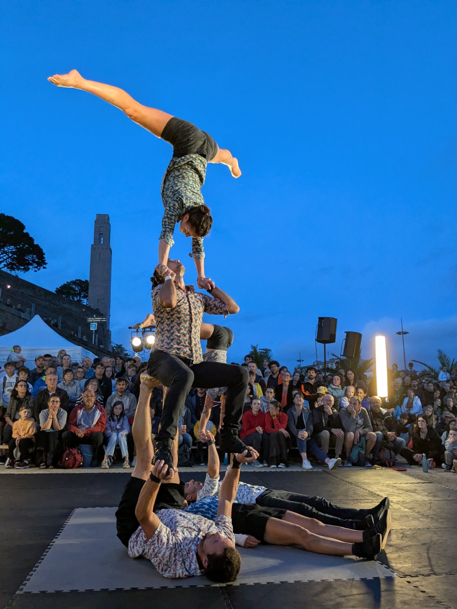 Kontact est la rencontre entre six acrobates, sans agrès ni filet. Avec leurs corps comme uniques instruments de travail, ils déploient dans des portés acrobatiques tout ce qu’ils ont de force et d’agilité, de puissance et de grâce, mais aussi de fragilité et de vulnérabilité. À l’image de leur propre maxime « à voltiger sans péril, on chute sans gloire ! », ils défient la hauteur et la gravité. Un spectacle léger et intimiste, rempli de joie, de convivialité et d’humour.