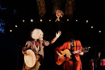Deux marionnettes à taille humaine, deux vieilles chanteuses siciliennes que la musique habite avec l’intensité des femmes qui ont vécu, mais sans jamais s’avouer vaincues. Filet de guitare et torrent de voix, elles nous mordent au cœur et nous plongent dans un rire affolé, avec toute l’insolence que peuvent se permettre ces divas qui n’ont plus rien à prouver que leur amitié et la joie d’être encore de ce monde, ensemble.