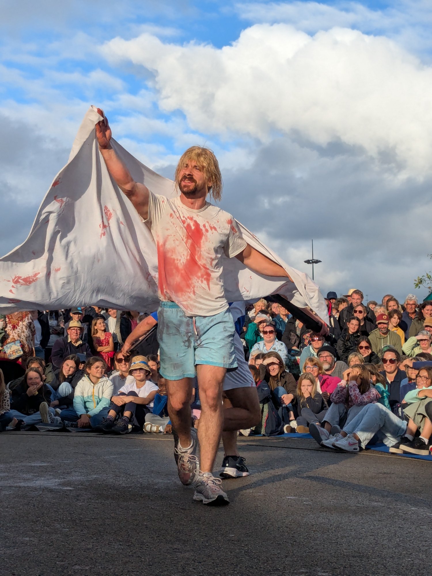 À l’issue de leurs trois années de formation à l’école supérieure de Théâtre Bordeaux Aquitaine, quatre artistes fondent en octobre 2022 la compagnie Bravache afin de prolonger leur travail collectif. Animé·es par le désir d’un théâtre ludique, pluridisciplinaire et ancré dans l’espace public, ils cherchent à sortir des salles traditionnelles pour aller à la rencontre des spectateur·ices. Leur démarche vise à abolir la distance entre scène et public, à désacraliser le geste théâtral et à faire naître le spectacle à partir de moyens simples, portés par l’énergie du jeu. Défendant un art collectif et politique, fondé sur le partage et la convivialité, la compagnie réinvestit l’espace public comme lieu de rencontre. Leur première création, inspirée de l’Iliade, inaugure un cycle de réécritures de mythes et de récits populaires dans l’esprit d’un théâtre de tréteaux sans tréteaux.