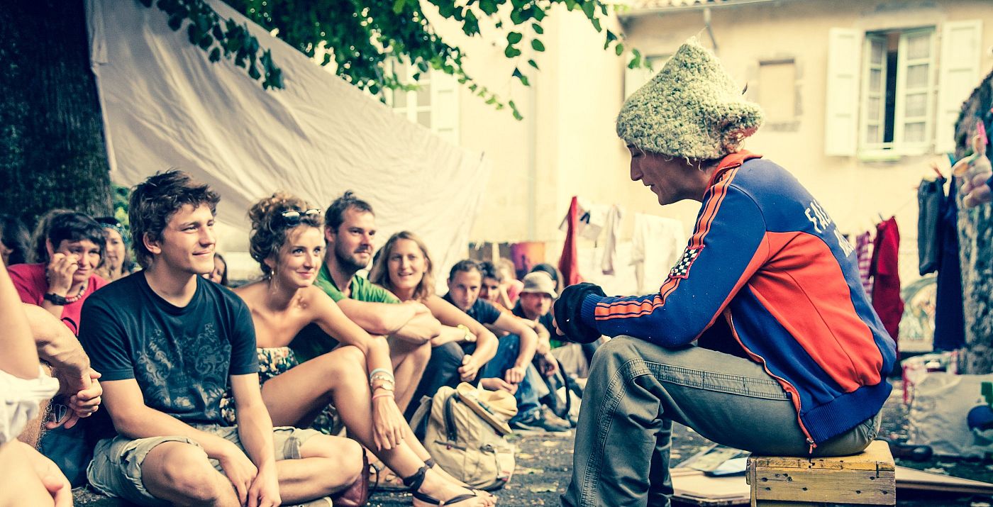 La compagnie Les Chiennes Nationales a été fondée en 2010 sous la direction artistique de Maïa Ricaud. Entre chaîne nationale et scène nationale, ce nom est un lapsus : l’emploi involontaire d’un mot qui fait rire, réagir ou s’offusquer. C’est exactement la fonction du théâtre. Et la rue sera leur terrain de jeu. La littérature est le moteur des Chiennes Nationales, le point de départ de ce qui initie le partage. Prendre des romans comme matière première pour leurs spectacles ouvre tous les possibles quant à la forme finale. Les représentations s’écrivent avec le public, dans une grande maladresse assumée, avec un certain amateurisme revendiqué : parce que c’est bien plus beau que le professionnalisme, et qu’il y a le mot amour dedans. La compagnie n’existerait pas sans ses nombreuses collaborations artistiques, pensées autour d’une œuvre littéraire et de toutes les digressions qu’elle permet.