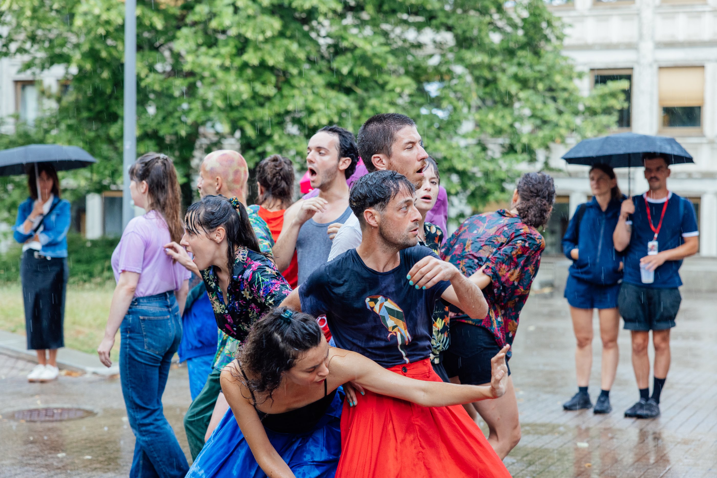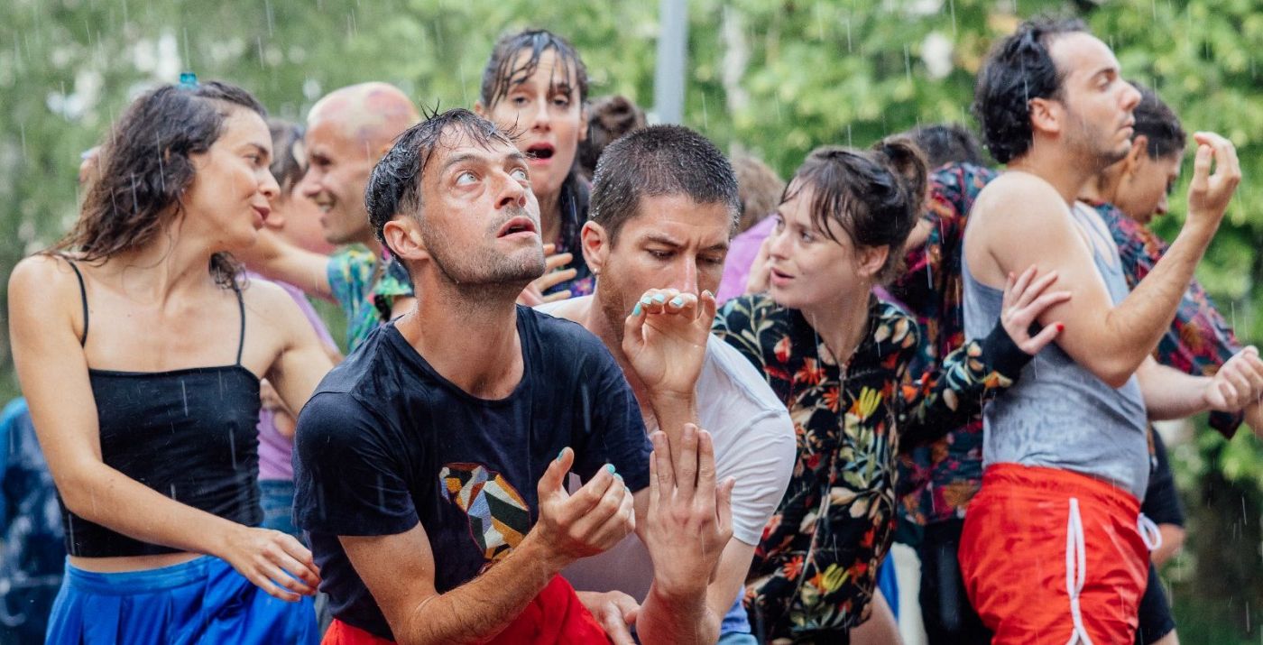 Douze danseurs et danseuses en tenue de ville colorée, uni·es en bloc, se fragmentent avec la même énergie fracassante que celle qui marque l’arrivée du printemps. Dans sa réécriture dansée et chantée a cappella de l’œuvre d’Igor Stravinsky, le collectif La Ville en Feu réinterprète l’œuvre originale et s’en éloigne, joyeusement.