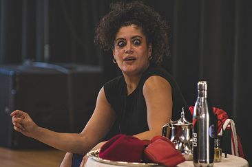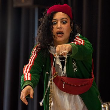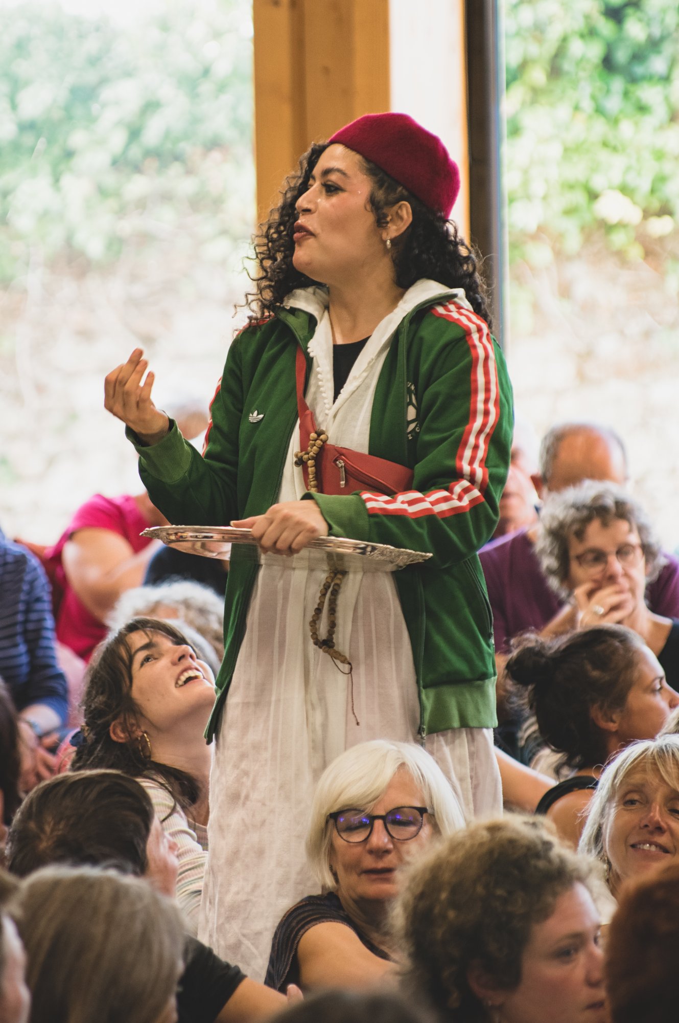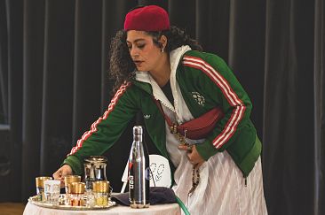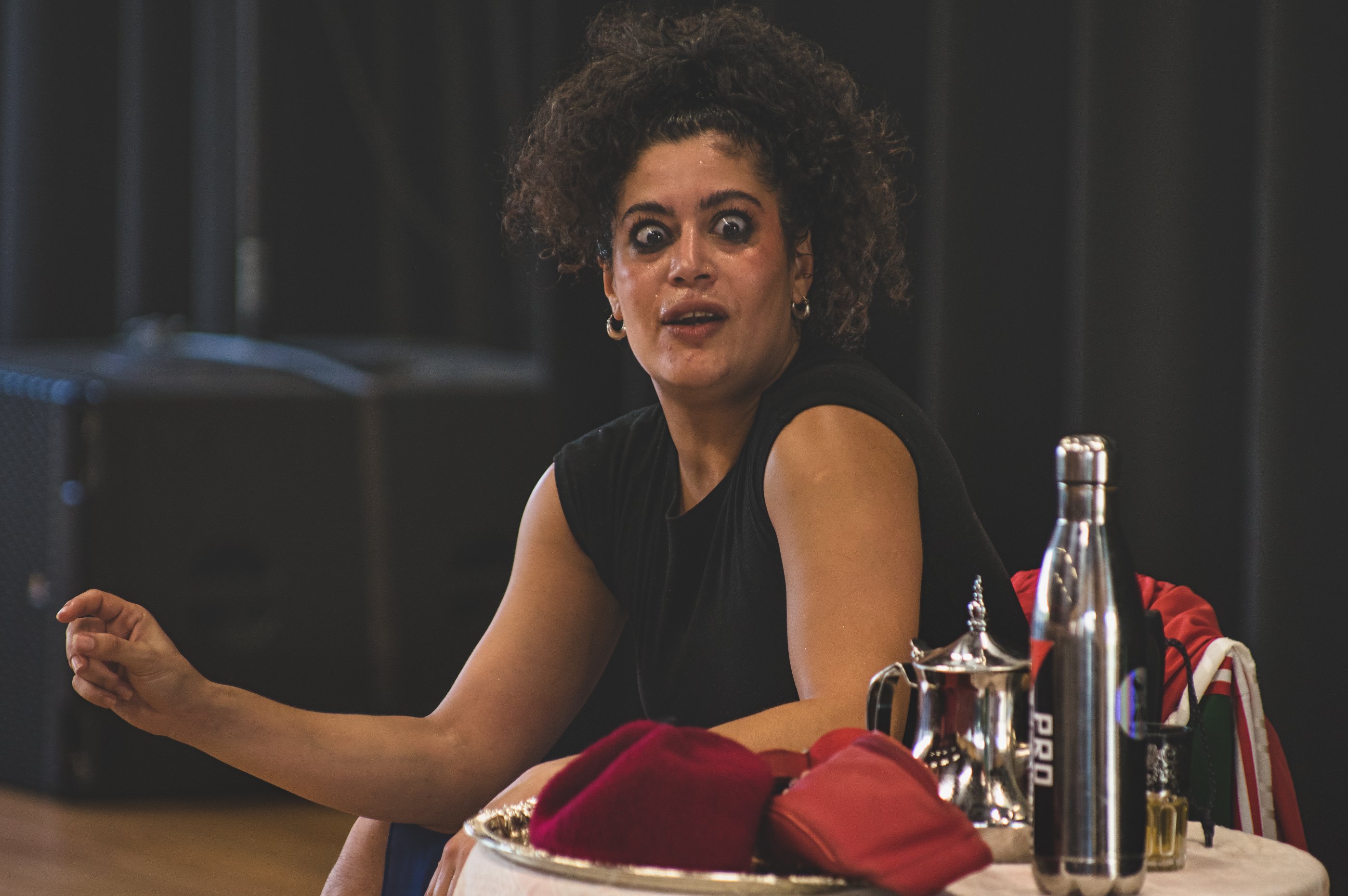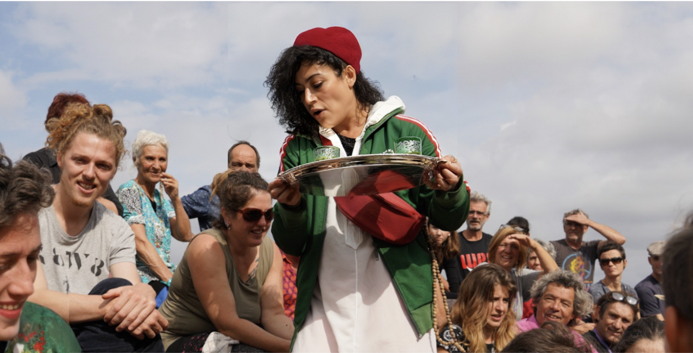 Mektoub, c’est un seule-en-scène multi-personnages mi-stand-up de cirque, mi-chant sous la douche, mi-danse expérimentale et mi-makrouds de Mima.