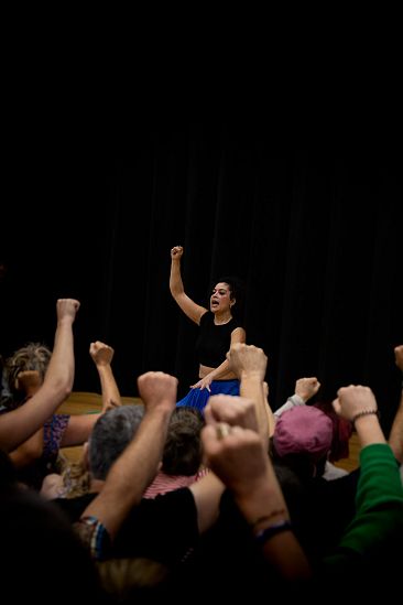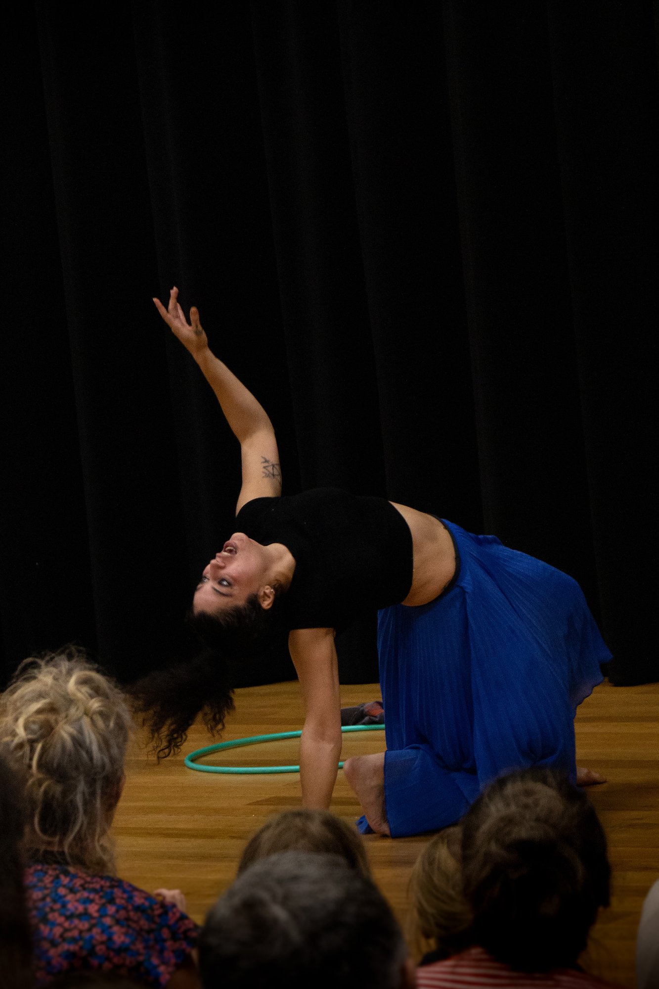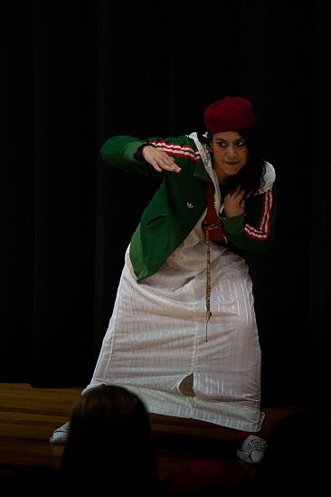 Mektoub, c’est un seule-en-scène multi-personnages mi-stand-up de cirque, mi-chant sous la douche, mi-danse expérimentale et mi-makrouds de Mima.