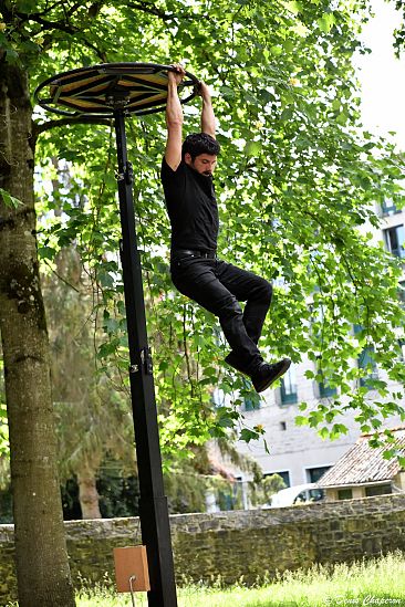 De et avec Bahoz Temaux / Regards extérieurs Thibaut Brignier, Mathieu Lagaillarde / Création sonore et régie son Jonathan Lassartre / Costumes Clarisse Baudinière / Construction agrès Etienne Charles / Production et diffusion Chloé Delpierre