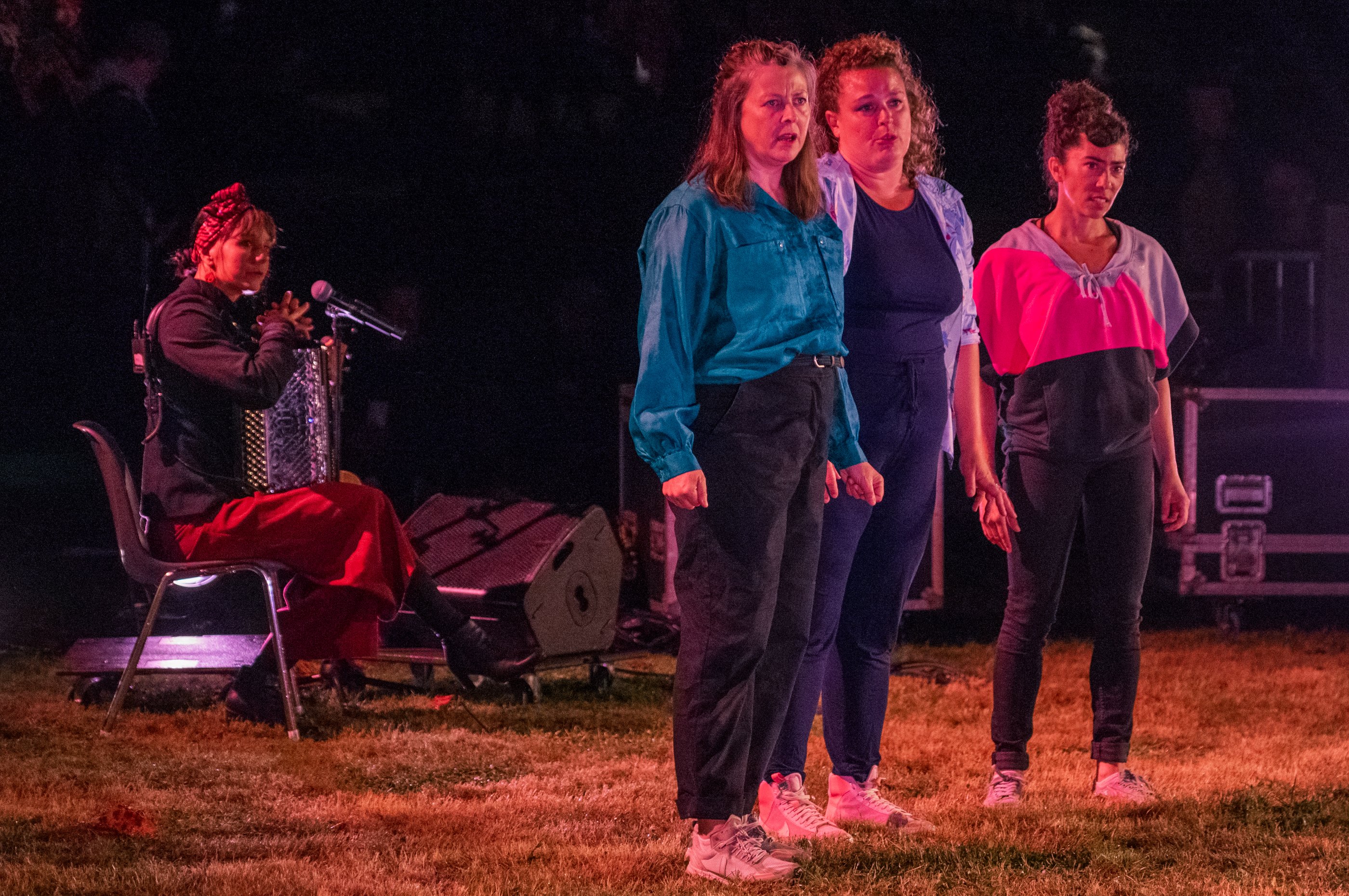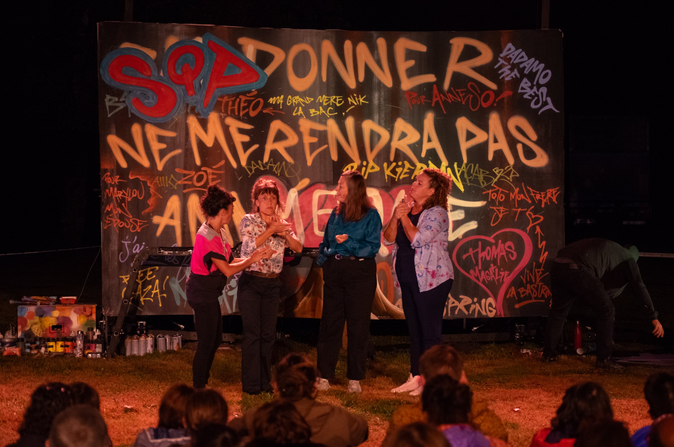 Écriture Marie-Magdeleine / Mise en scène Marie-Magdeleine et Sarah Reimmors / Interprètes Marie-Magdeleine, Pauline Blais, Barbara Drouinaud Bobineau, Laure Bezolles et Priscilla Muré / Composition musicale Clément Belio / Scénographie César Frère / Regards extérieurs Paul Toucang, Michael Monnin, Mathilde Saubole, Julien Marot, Sandrine Chaoulli, Patrick de Valette