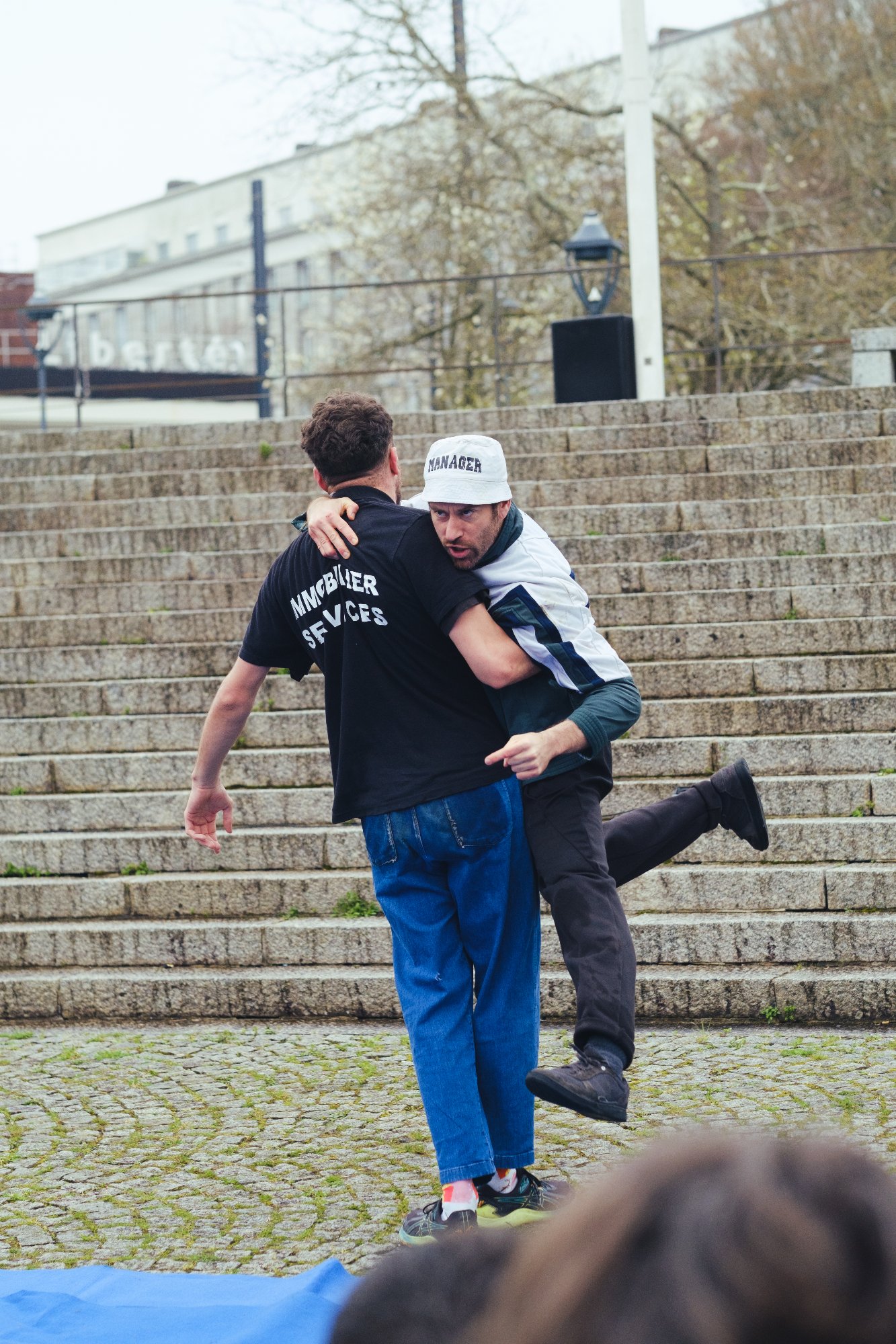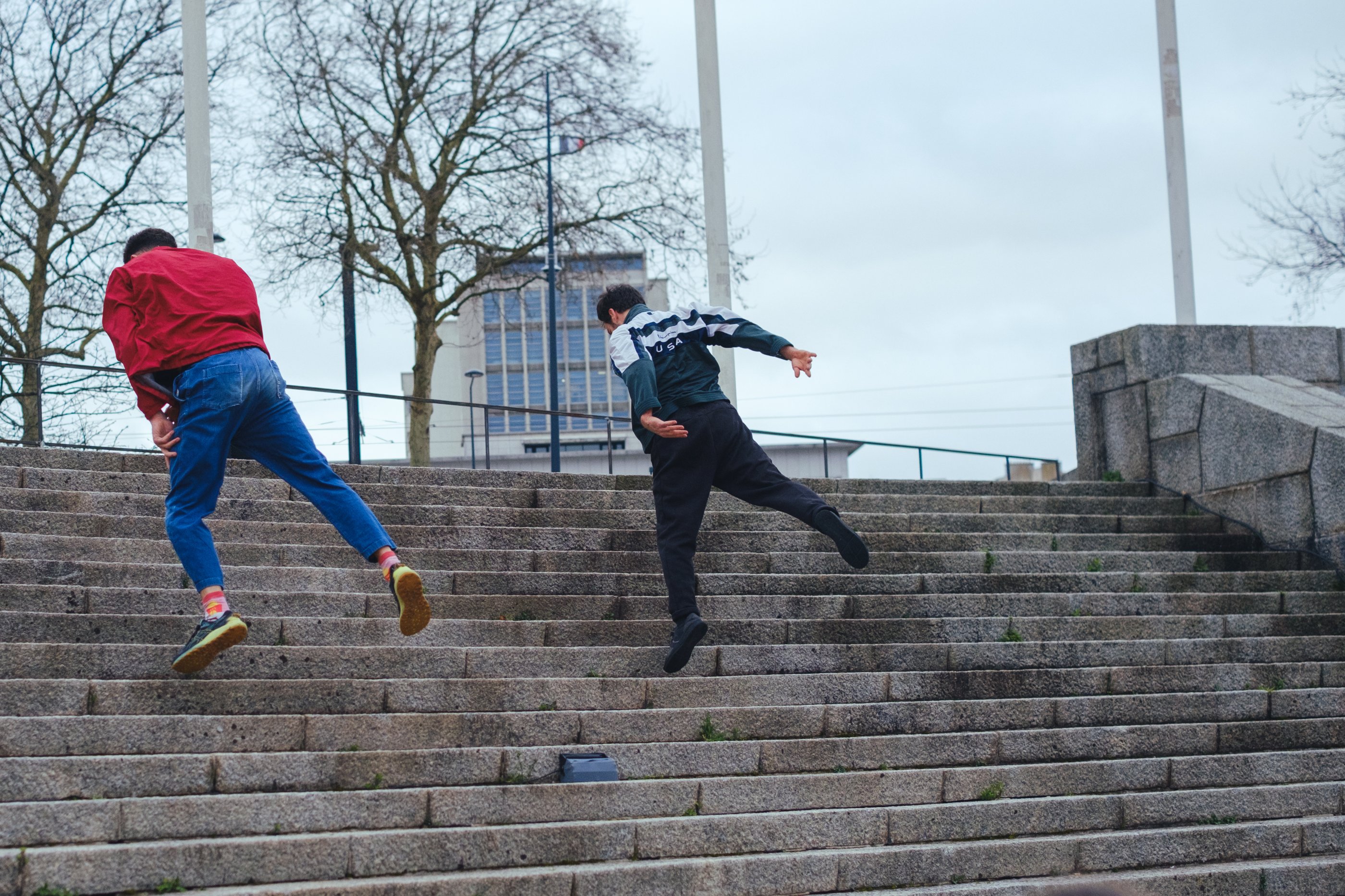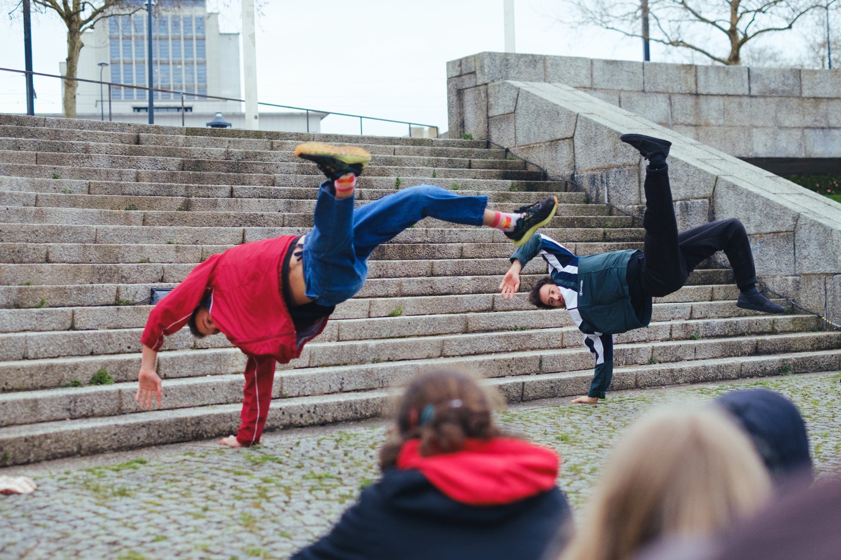 Hune raconte une jeunesse qui passe ses journées dans les cages d’escalier. Les marches se transforment en lieu de discussion de tous les possibles. On s’y dispute, on s’y réconcilie, on y habite ; la vie bouillonne sous les pierres aussi intensément que sur le béton ! Porté par l’élégance des corps, l’énergie du mouvement et la musique jouée en live, Hune pose un regard tendre sur l’absurdité du quotidien et sur la poésie brute de l’espace urbain.