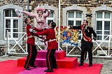 A l’occasion des 50 ans du jumelage franco-allemand de Plouguerneau, Le Fourneau a souhaité associer une invitée de marque à la cérémonie. En pleine tournée européenne, la reine d’Angleterre en personne est attendue à 18h18 pétantes ! Un majordome so British, deux horse-guards imperturbables, un tapis rouge, deux marches et l’Union Jack sont installés. Monsieur le Maire vient d’arriver, les fleurs sont prêtes… L’irrésistible monarque est annoncée !