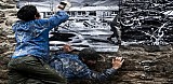 Deux colleurs d’affiches viennent poser une fresque photographique de 100 m2 sur un mur. Généreux sur la colle, ils restent appliqués à leur tâche malgré les nombreux aléas du métier : accrochages de balais, joyeux badigeonnages ou conflits de territoire. Ils jouissent de leur jeu et le public également. Sous les gerbes de colle biodégradable et à renfort de ressorts comiques, les images apparaissent soudain sur le mur. Telle une vague, une Drôle d’impression parcourt le public car soudain des histoires se racontent, celle de la ville, celle du quartier et de ses habitants.