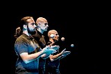 Ce trio fou et sympathique jongle du rap indien, du funk, de l’électro. Les objets et les corps se transforment en instruments de musique, les balles et les rebonds en notes, les vibrations en rythmes, les chutes en silences… Entre chorégraphie sonore et laboratoire rythmique à ciel ouvert, une quête musicale et humaine où la musique se regarde et le mouvement s’écoute.