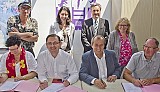 Signature de la convention de mécénat en présence notamment de Nicolas MORVAN, président de la Communauté de Communes du Pays de Quimperlé, Paul HUON, Anne QUEGUINER et Jean-René LABAT du Crédit Agricole du Finistère, et Michèle BOSSEUR et Claude MORIZUR du Fourneau
