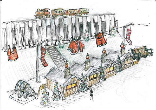 Printemps 2013, la Ville de Brest, partenaire du Fourneau, lui propose de réfléchir au moyen de réinventer le marché de Noël de Brest. Le fourneau imagine alors une rencontre entre les services de la Ville, des habitants volontaires et la compagnie Irlandaise Bui Bolg, spécialiste dans la confection de décors XXL pour l’espace public. Une nouvelle collaboration est née !