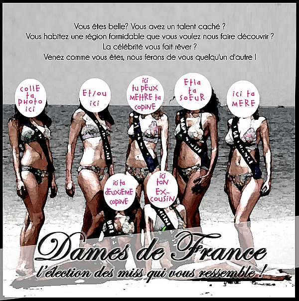 Dames de France est une parodie théâtrale et musicale de l’univers des miss et de la télé-réalité. Une dose de voyeurisme, trois cuillerées à soupe d’individualisme exacerbé, une pincée de célébrité à tout prix, une bonne rasade de manipulation médiatique, une ou deux louches d’exhibition de l’intime et de la féerie du monde de l’audimat à volonté... ajoutez à ces ingrédients l’humour, la folie et l’œil décalé de ces sept chanteuses et comédiennes et vous obtiendrez un bon moment de spectacle à la sauce Goudron.