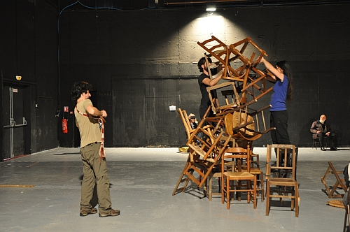 Une centaine de chaises constituent le dispositif scénographique mobile et déambulatoire, se posant comme lieu d’exploration, de métamorphose, de dialogue, de construction, d’identité culturelle, sociale et politique, poétique.