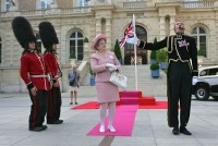 Un Majordome so British, deux horse-guards imperturbables, un tapis rouge, deux marches et l’union jack… L’irrésistible monarque est annoncée… Une tournée épique d’une Reine d’Angleterre décomplexée à la conquête de nouveaux sujets…