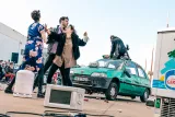 Les personnages de ce road movie sont, comme nous, à bord d’un bateau à la dérive. Leur seule bouée de sauvetage, une vieille Peugeot 106 qui devrait leur permettre de fuir le décor usé qui les as vu naître. Mais ils se rendent vite compte qu’ils sont cinq et qu’il n’y a que quatre places… Ces cinq Diogène de parking que tout oppose vont se retrouver obligés de s’entendre pour pouvoir partir. Très vite une question surgit : l’humanité́ est-elle condamnée à se disputer éternellement sur l’existence de Dieu et le prix de l’essence à la pompe ?
